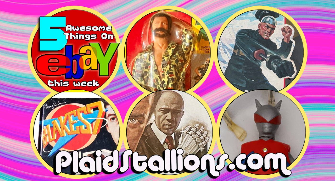 Knock Offs, Plaid Stallions, 5 Awesome Things on eBay this week, 5 Awesome eBay, Mr Action, Demo Man, Henshin Cyborg, Takara, Big Jim, Matt Helm, James Bond, 007, Mattel, Action Figures, A Man Called Sloane, NBC, Robert Conrad, Blake’s 7, British Annuals, Pod Casts, Pod Stallions, GI Joe bootlegs, Bruce Action,