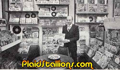 Mort Liebman displays his Star Trek record, one of the hottest items in the toy field. This is the power records booth and I am drooling! Check out those Planet of the Apes and G.I. Joe store displays, amazing.
