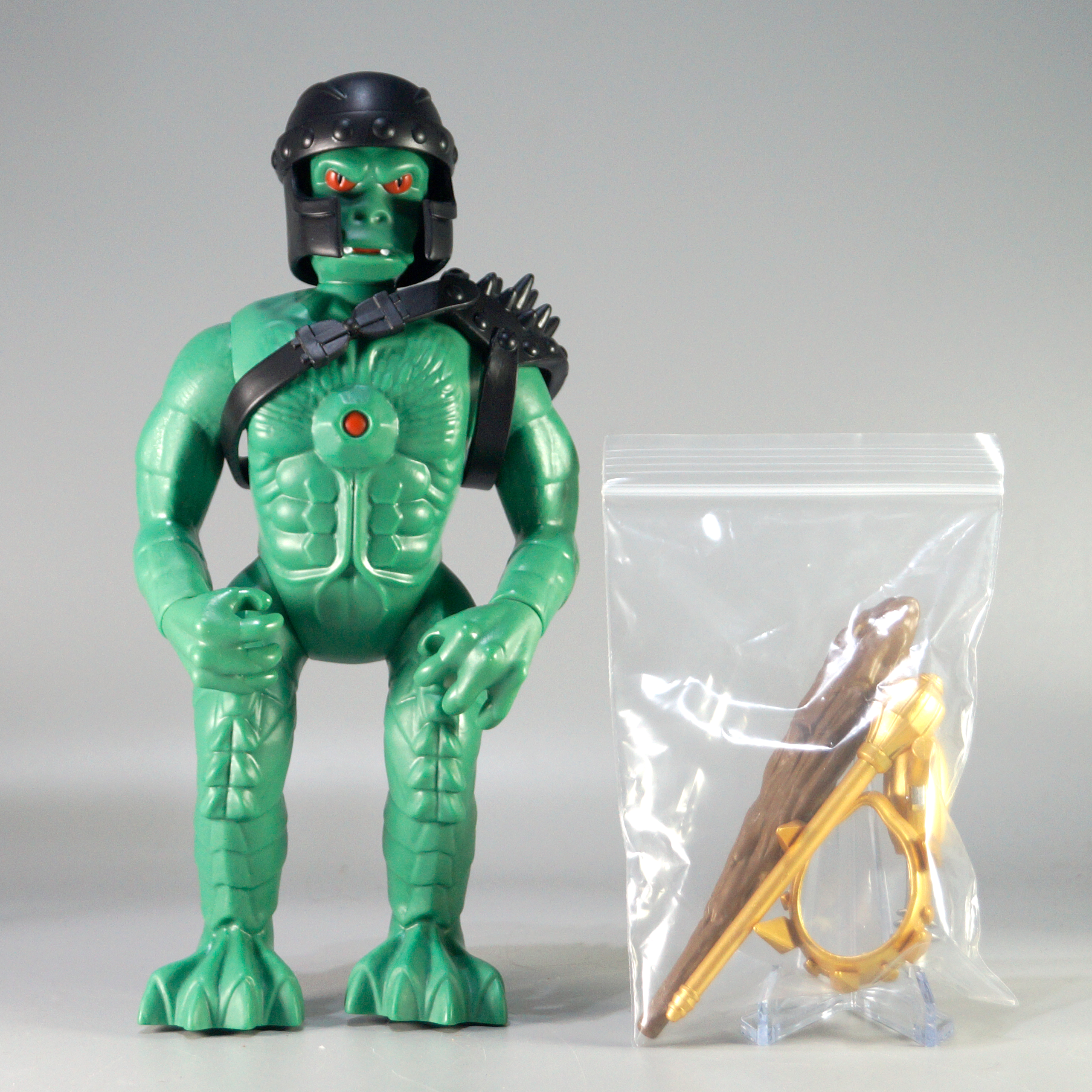 Adventure Command Gargon articulated vinyl figure. He’s the king of the monsters, clocking in at roughly 9 1/2 inches tall. He towers over the vintage figure. Add this beast to your Adventure Command collection today. He comes in a collector-friendly box with an inner clamshell. Accessories include a crown and a sceptre, a club, gladiator’s shoulder armour, a helmet and a ray gun.