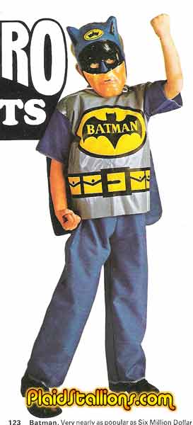 You can blame Hank Venture for making the Batman playsuit popular again. As a child, I had to settle for a Collegeville "The Bat" costume, despite being an obvious rip off, it was always cool to wear those creepy masks. The one pictured is by Berwick.