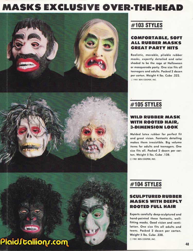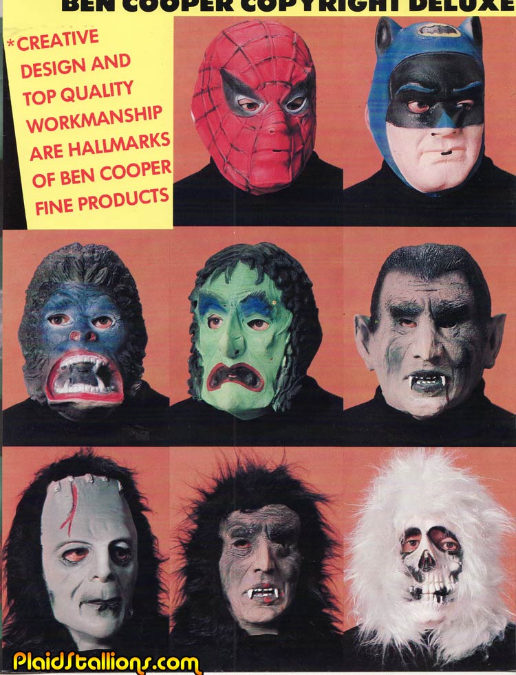 1981 Ben Cooper Catalog Cover That Fred Flinstone mask scares me more than Dracula and the Red Skull combined.. They had to put the bat symbol on his cowl because nobody recognizes Batman. That caveman mask rules. <--previous • index • next Page-->