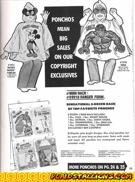 Ponchos were another way ben Cooper got sales in the off season, licensed characters such as the Hulk were good sales motivators.