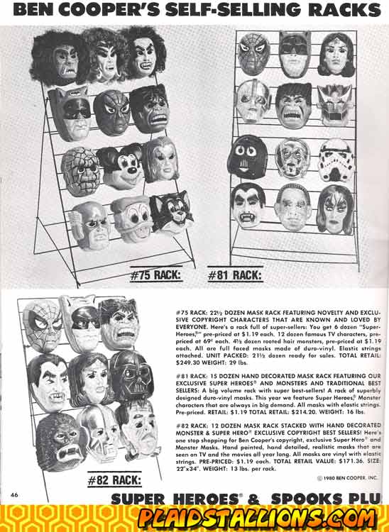 These store displays for masks are killer, there is a lot of pop culture in there.