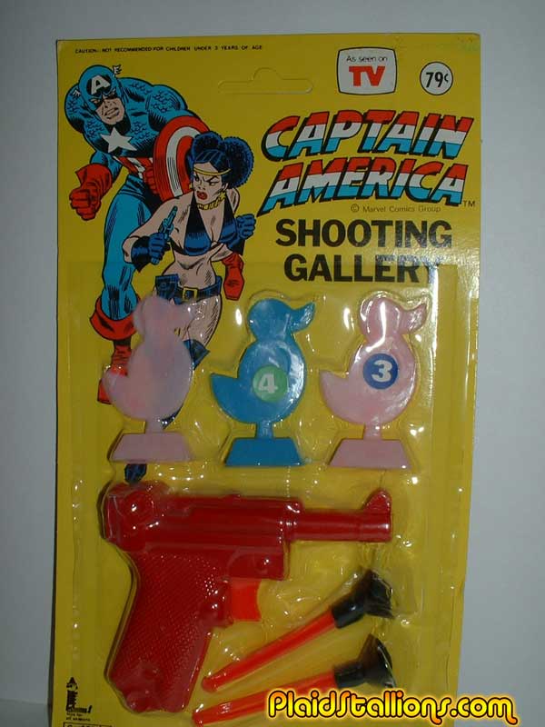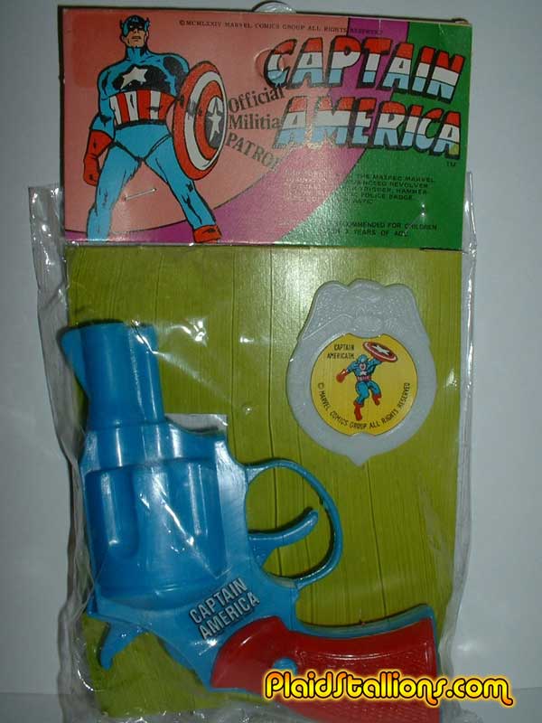 Our book "Rack Toys: Cheap, Crazed Playthings" features many Captain America toys.