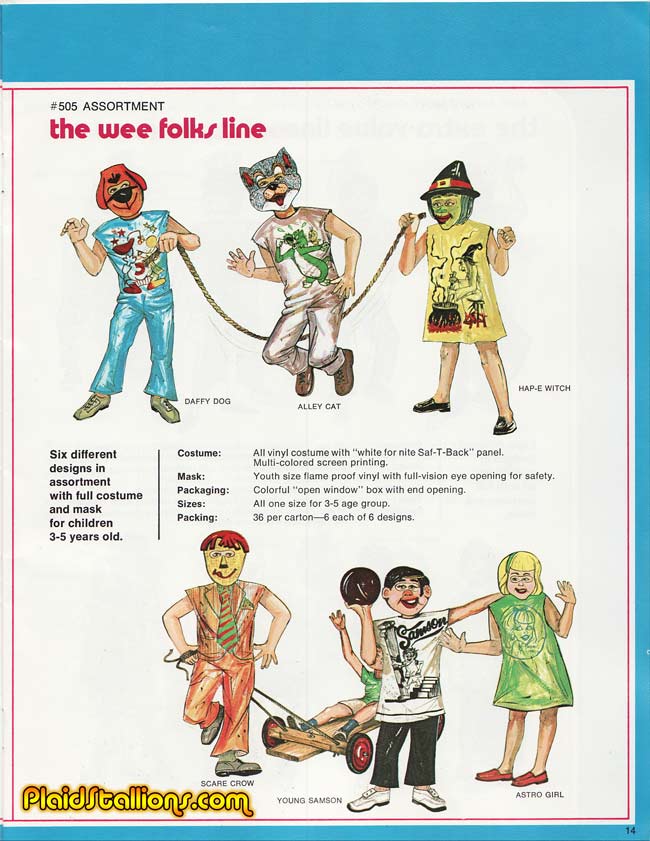 Why is Young Samson holding a bowling ball? 1974 Censtable Halloween Costume Catalog Index