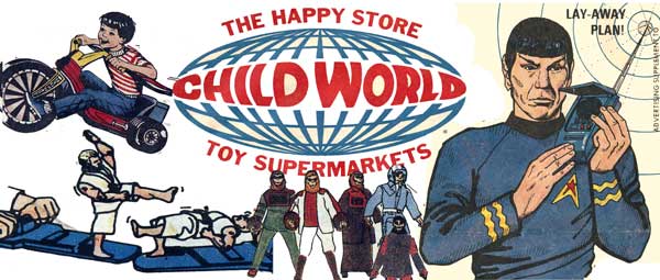 As far as 70s toystores go, none are as far remembered and beloved as Childworld, a chain which had at one point 180 stores across the united states. This 1975 flier preserves what they had to offer during that time including the greats like Mego Star Trek and Planet of the Apes: