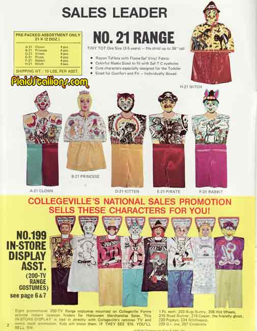 An assortment of generic but popular items, clown, witch, pirate, these themes never go out of style.