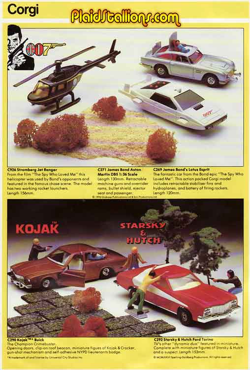 James Bond was the king of cool vehicles, so it comes as no shock that Corgi offered many of them. Starsky and Hutch makes a lot of sense as well, who didn't want a Torino?