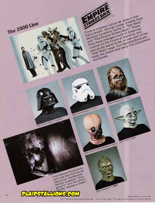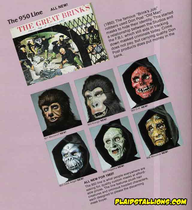 The 1100, 2000 and 800 series of Don Post Masks Back to the 1982 Don Post Catalog