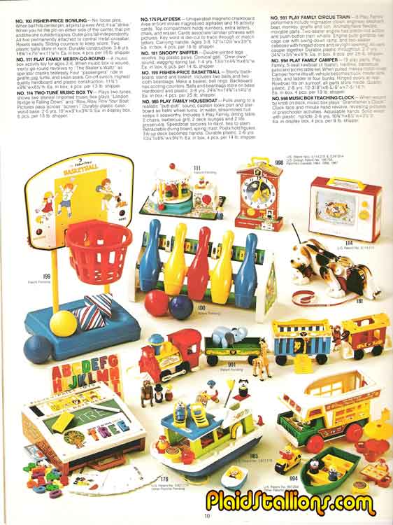 1975 Fisher Price Catalog Back • INDEX • Next--> These pre school toys and little people sets would be sold for much of the 70s, some are still available today.