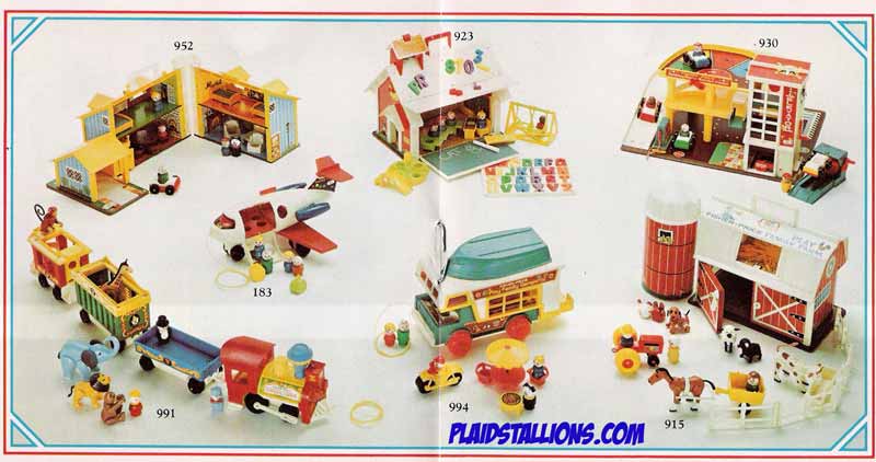 Who didn't get their start with some of these classic toys? Just looking back at this catalog brings back a few memories, it's interesting to notice how long Fisher Price sold many of these staple toys without changing their design. Something to be said about making something well and durable.