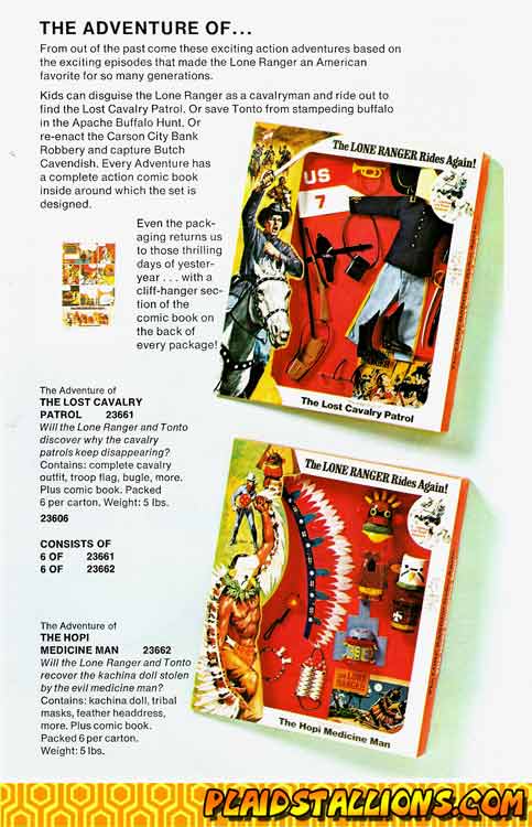 Gabriel put a great deal of care into the outfits for the Lone Ranger series, each one was meant as a disguise for either the Lone Ranger or Tonto. Here you can either choose a Calvary officer or a Medicine Man. A nicely drawn comic on the back explained the story..