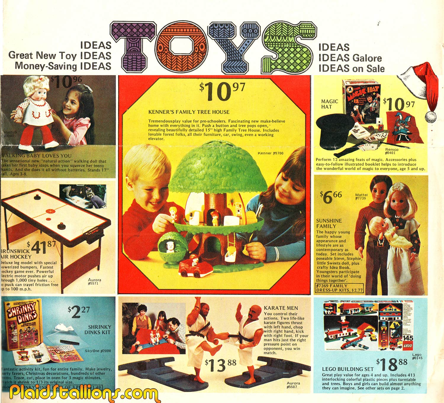 A lot of 70s gold on this page, Sunshine Family, Remco Magic Hat, Kenner Tree-House and my favourites Aurora Kaaaarate Men!