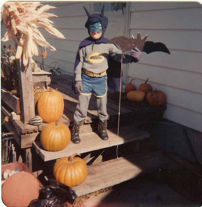 I'm Batman! Here's Chris Franklin as the caped crusader, Chris grew up to do neat stuff like the packaging for the new Captain Action dolls