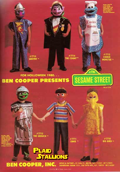 These Ben Cooper Sesame Street costumes are just wild, not only do they have that classic "smock and mask" look about them but they're Sesame Street for gosh sakes!