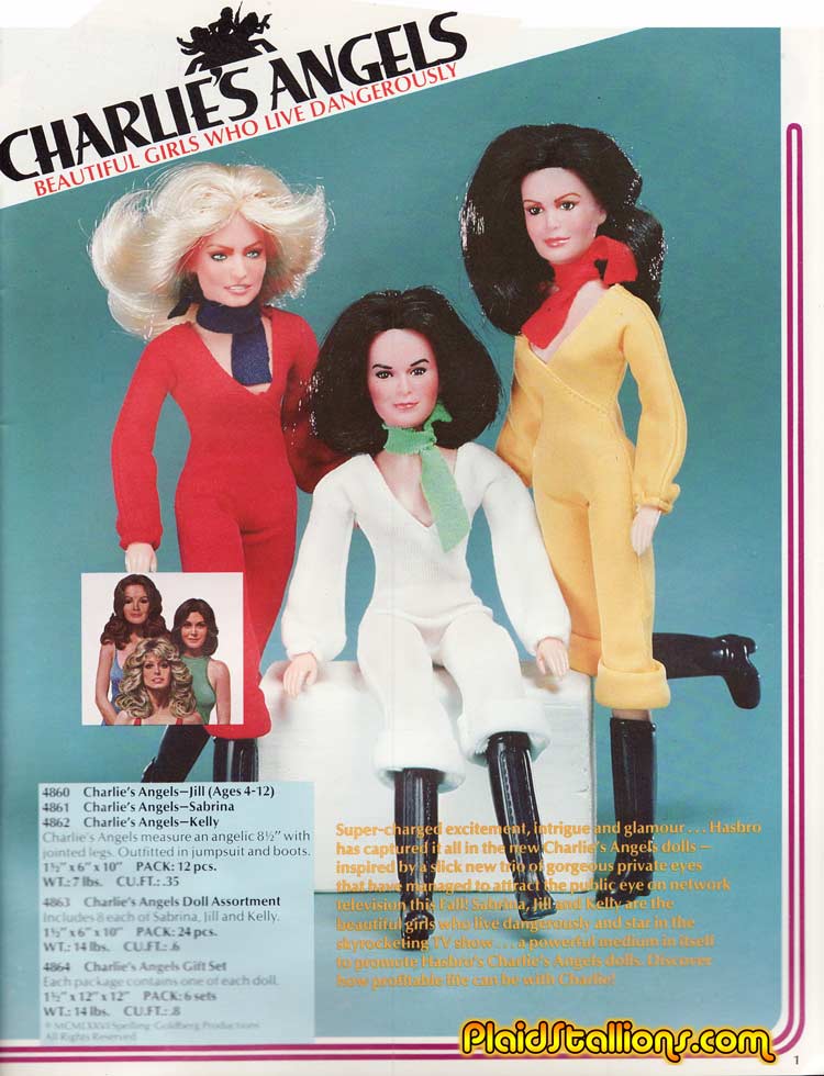 The 1976 TV debut of Charlie's Angels was somewhat reviled by TV critics but a runaway hit with the audience which not only included men but young girls who saw the crime fighting trio as role models. This lead to merchandising and in 1977 "Angel Mania" hit toy shelves, Farrah Fawcett and Jaclyn Smith signed their likeness to Mego for celebrity fashion folls but the main event was the Hasbro line of 9" figures based on the series.