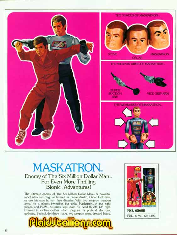 The art in the catalog no longer showed Steve chopping Maskatron's head off, it was replaced by this half nelson..
