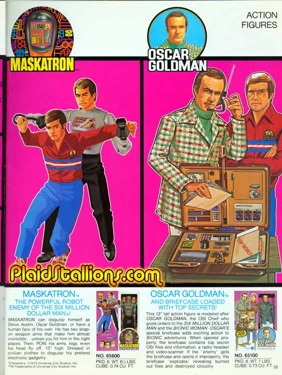 Maskatron and Oscar Goldman, the big releases for 1976 and 1977 respectively were forced to share a page in the 1978 catalog. Cue that "Odd Couple" music!