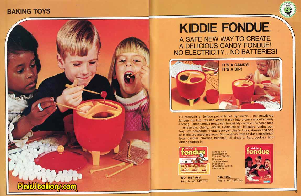 The Fondue craze hits the teeter totter set, "Kiddie Fondue" is an awful name for a product though, sounds like something a Giant would make in a dark fairy tale..