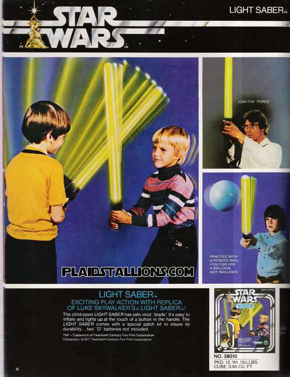Lightsabers have always been popular, it's amazing how much of this stuff is still sold today in form or another. Note that on this page Luke has been airbrushed to be holding that saber, I'm such a geek to have noticed that.