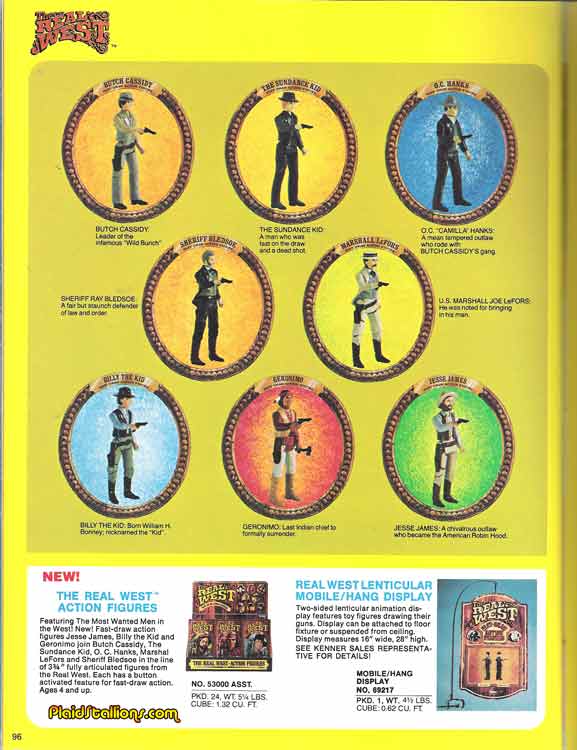 In the late seventies, Kenner did some experimenting and released a line of action figures based on the move "Butch and Sundance : THe early Years" which was a commercial failure. Kenner had done such a nice job on the toys that they attempted to repackage the line as "The Real West" in 1980.