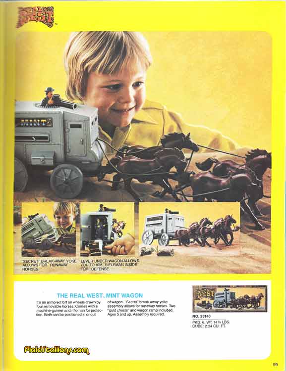 The stagecoach made it into more than one toy catalog during the late seventies, I say it a great deal around these parts but this one nicely made overlooked line of toys.