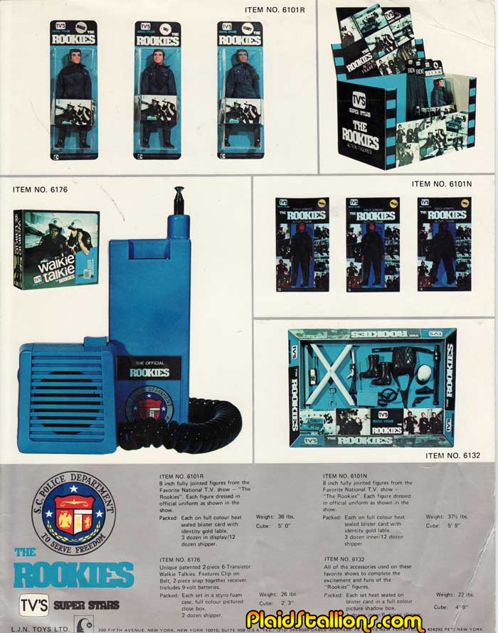 Many collectors wonder why LJN chose to license fledgling series "The Rookies" instead of the long running cop drama "Adam 12" which was produced by the company that made Emergency. It's not known although the Rookies had a decent 4 year run. LJN would eventually pick up another Aaron Speling series, S.W.A.T in 1975.
