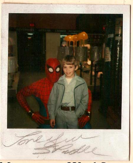 Paul Rigsby sent in this picture of him at Spider-Man at the Gateway mall in Jacksonville Florida in 1979. Paul wanted to point out his red plaid outfit is not on purpose, he had no idea Spidey was going to be there, he was, as he puts it "A poster boy for bad 70s fashion".