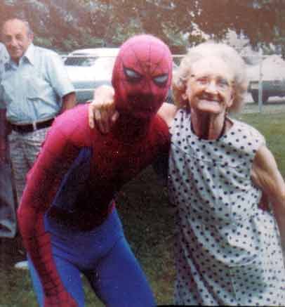 Spidey crouchs down for a shot with David's 85 year old Grandmother, he mentioned that whoever was in the suit had a great sense of humour, which totally fits.