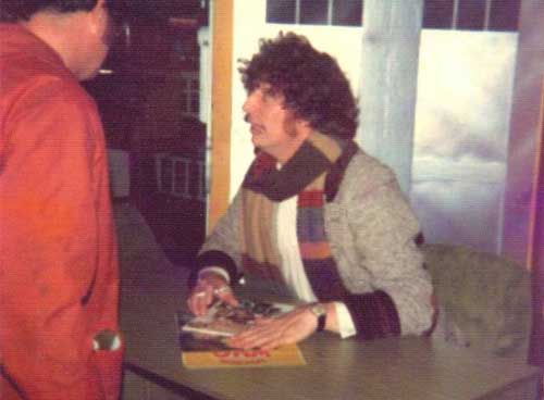 As cool as homemade Darth Vader's and mall Spider-Men are, you gotta love a vintage picture of a star signing in costume. That's why I pretty much exploded when Derek (the man responsible for this awesomeness) sent me this pic of 1975 era Tom Baker in full timelord regalia in Debenhams, Plymouth. I'm soooo jealous of that kid right now and I adore the home made Tardis behind him.