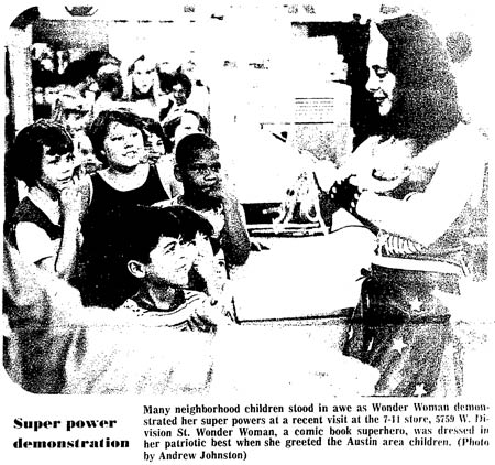 I absolutely love these shots of Wonder Woman, who was making the rounds in Austin Texas circa 1975. I get plenty of Spider-Man here, not that I'm complaining (keep 'em coming!) but it's especially nice to see DC's first lady holding court.