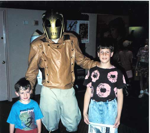 Mike T submitted this more recent mall appearance photo, it's from 1991 (that's what i consider recent) and it's his kids with Dave Steven's classic creation, The Rocketeer at Potomac Mills Mall near Woodbridge, Virginia . I didn't know there were appearances such as this but it makes total sense considering the costume.