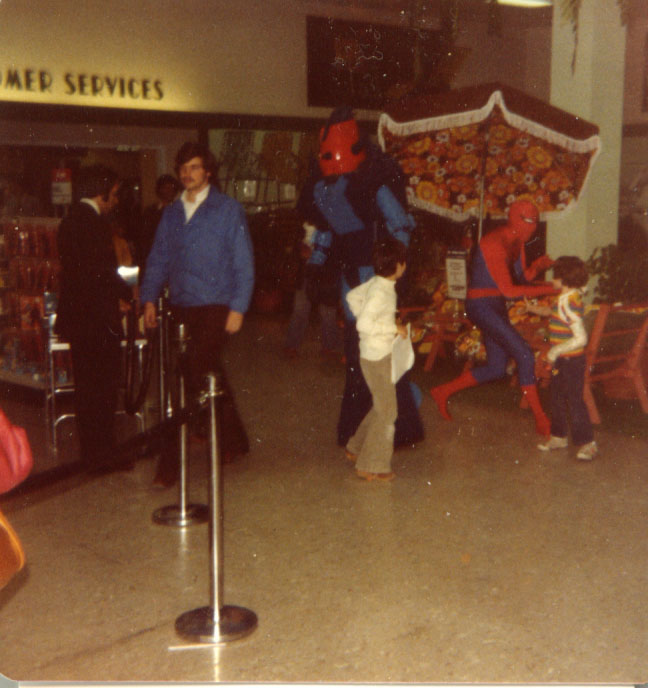 JD sent in this great vintage shot of a Spider-Man appearance in Cleveland 1978 although he can't quite remember the store it looks like Spider-Man is in the Office Supplies section.