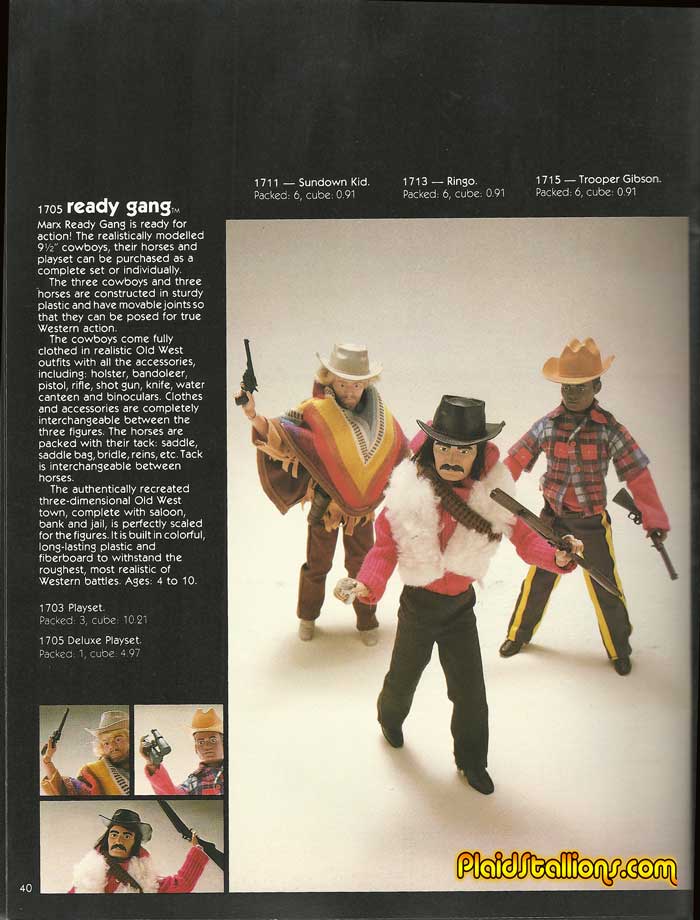 In 1977, Marx Toys launched the Ready Gang a beautiful line of 9" action figures from the old west with little to no back story (Seriously are these guys outlaws for good guys?) and it quickly flopped