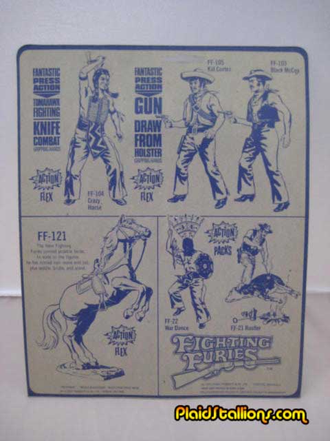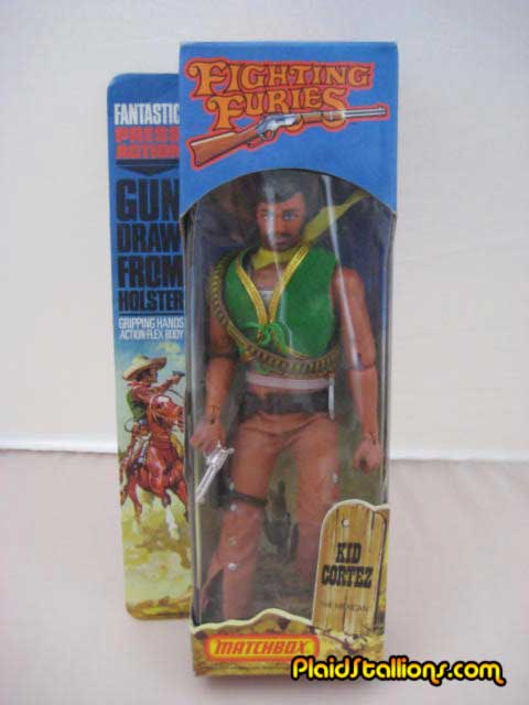 While the Fighting Furies wasn't a giant success in North America, it did enjoy popularity in the Europe, particularly the UK, that's why the second line of Western Fighting Furies were launched there. US Matchbox catalogs showed these three figures but featured the words "Not Available in the USA". For more on this line, check out Megolike.com. All photos in this gallery are courtesy of Bill Frost.: