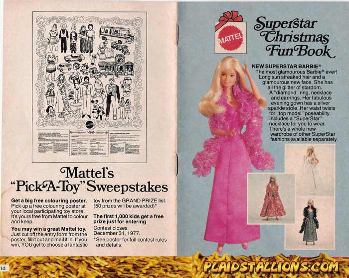 Barbie, Mattel's first lady graces the cover, on the back there is a sweepstakes announcement featuring line art.