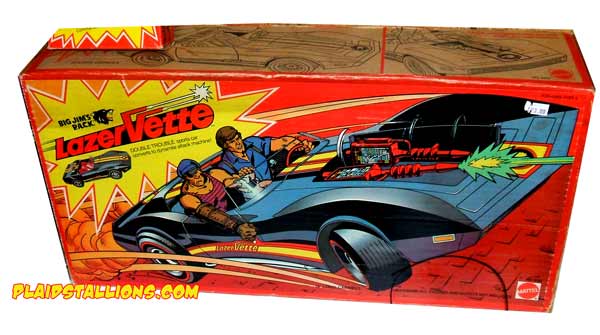 The Lazervette was a super charged Corvette with double trouble action, Laser cannons spring right from the Hood. The Howler was a retooled Big Jim Supercross bike (which also got use as a Sweathogs vehicle) now looking rough and tough in the Wolf Theme.