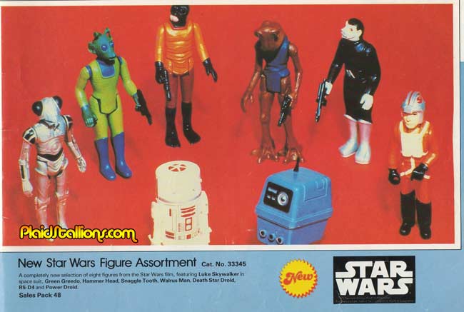 The second wave of Star Wars figures looked a lot different than shown here, the Death Star Droid would be retooled, Snaggletooth would be shorter and Luke X Wing wouldn't be a repainted Fisher Price Adventure People figure.