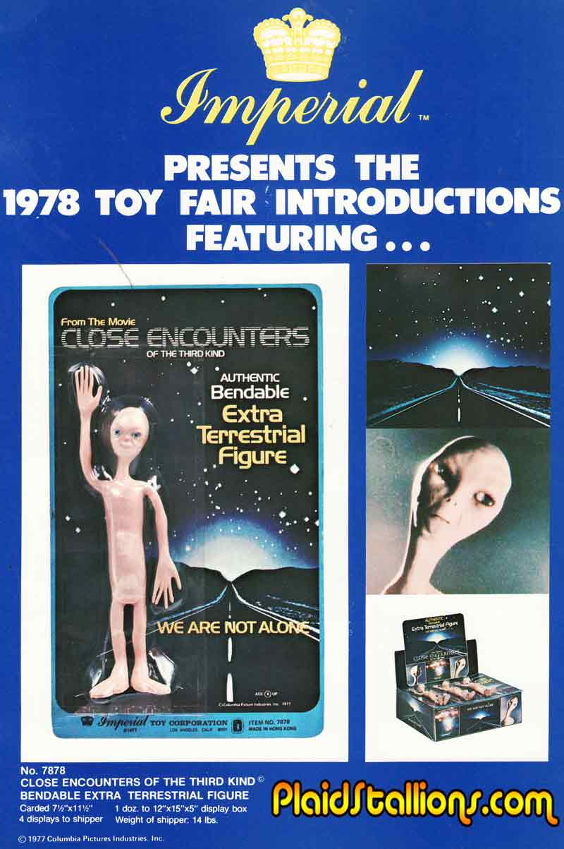 This bendable figure of the alien from "Close Encounters of the Third Kind" was one of the few pieces of merchandise available from the film. My local dominion playworld had a display box of these until they closed in the early 1980s so I'm going to assume they were not a runaway success.