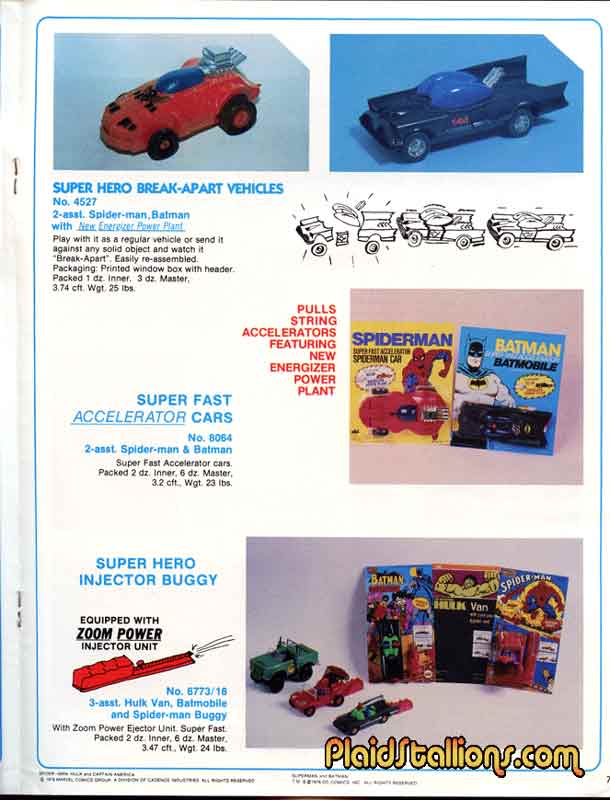 These break apart batmobile and Spider-Mobile items must be really hard to find seeing as I've never heard of them before. Sort of a mix of smash up derby with comic books, AHI was good at mixing trends..
