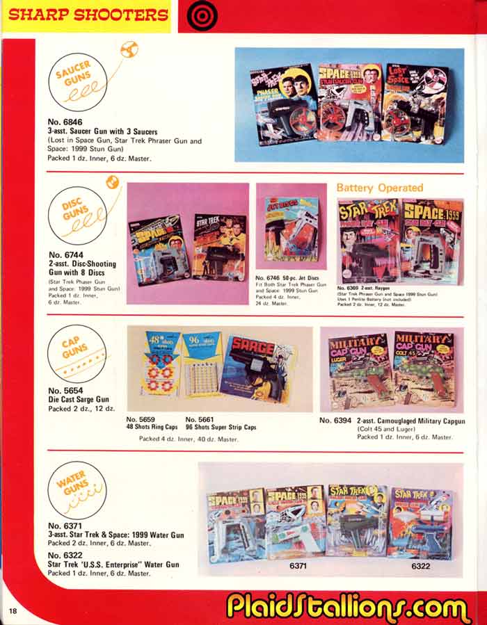 Star Trek, particularly phasers were big business for AHI (You can see more AHI Star Trek in their own gallery here AHI also used Space:1999 to it's fullest capacity, creating a variety of products that emulated the Star Trek Brand. Azrak hamway Space:1999 Gallery.