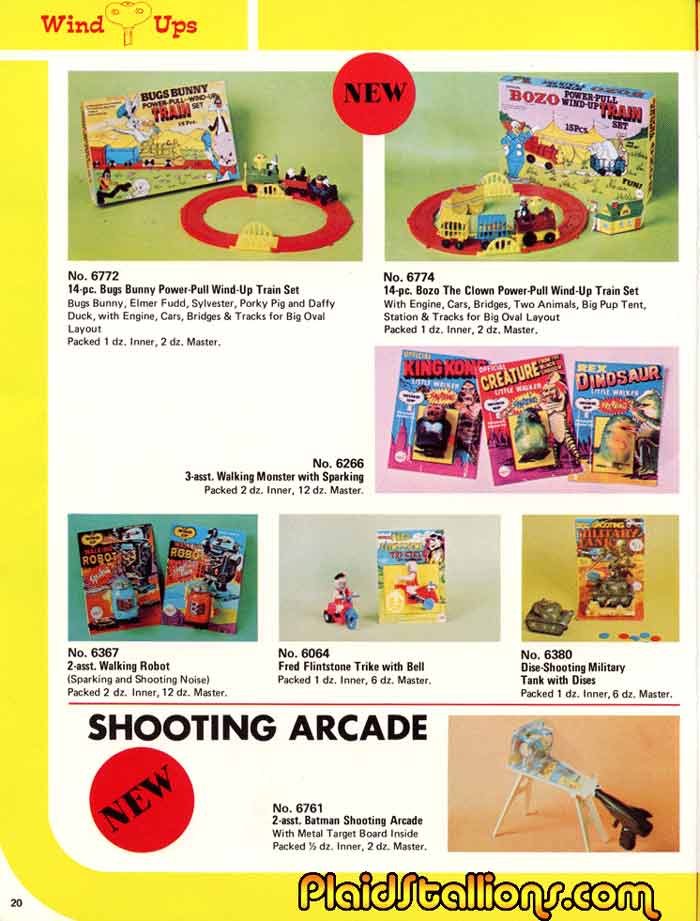The Supermonster Wind Ups were left overs from the Super Monster line of the mid 1970s, you can see more in the Azrak Hamway Super Monster Gallery. The Batman target set is a higher priced offering from AHI and quite a desired item these days.