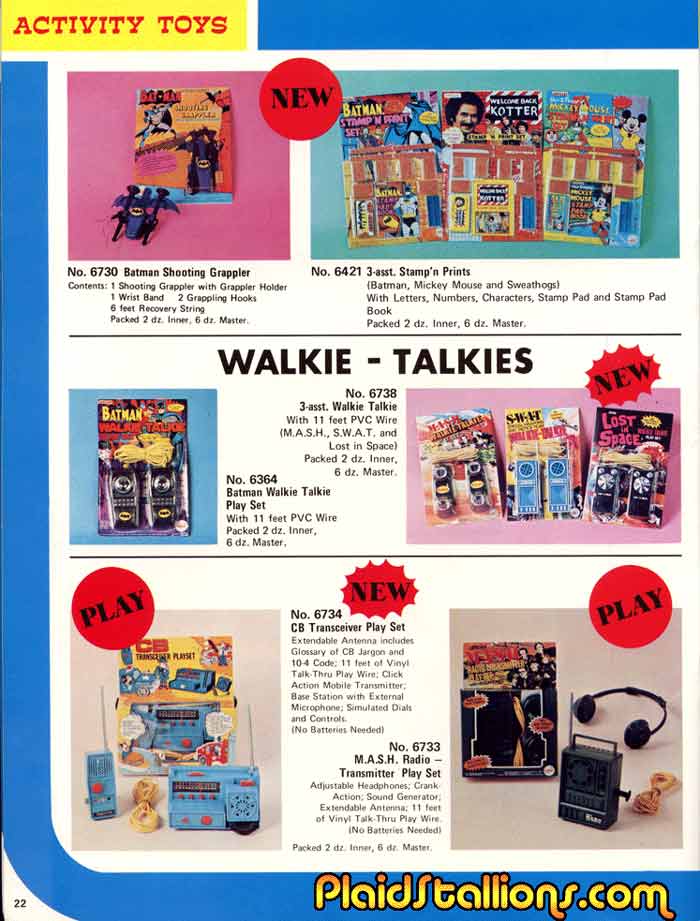 The Batman shooting grappler is such a logical and cool toy, I wish I owned one. The Lost in Space walkie talkies are really hard to find now, it's not really odd they chose the license, it was likely cheap and the show had a healthy syndicated run.