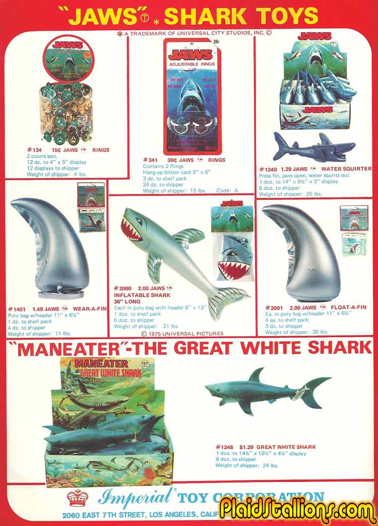 Imperial smartly cashed in on the Jaws craze of the mid 1970s with a series of inflatable toys..
