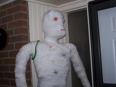 This Seven foot tall recreation of the Lincoln Mummy was made by yours truly and he comes out every Halloween, he has big claw like hands and is covered in blood. I've seen kids just dart away from him. The only difference between him and the Lincoln Mummy is mine wears size 15 Chuck Taylors, just like his papa.