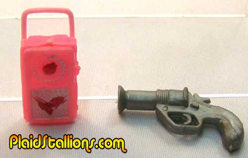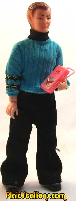 It's sort of what you might imagine Tony Randall would look like as Mr. Spock. Given with his budget nature, Mr Rock's gun looks like a GI Joe Flare Gun and his "Space communicator" looks like a transister radio that would come with a barbie clone, it's even pink! Here's tip, if you need one of these, search old Barbie clone knock offs on ebay, it's that easy.