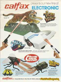 They are perhaps most famous for their 1978 line of action figures called "Star Raiders" and it's follow up line "Starroid Raiders" both of which seemed to have been inspired by a certain George Lucas film (hint it's not American Grafitti). In 1979, Tomlands lines seem to have been carried in the United States by a company called Calfax, here is their spacey 1979 selection: