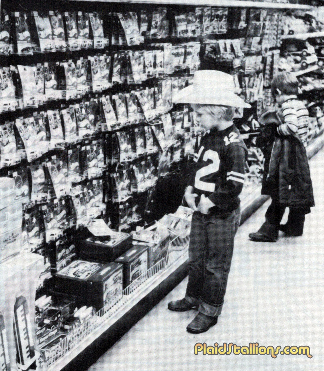 A little buckeroo surveys some Hot Wheels in this picture from 1981.