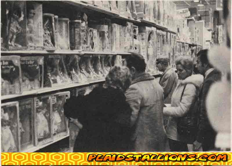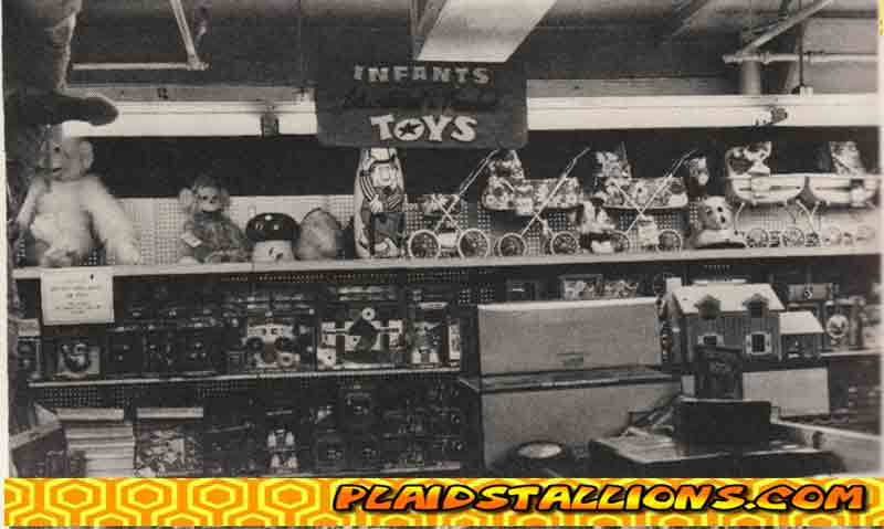 Another great shot from the same store but now the Hobby departmen, look at those great Aurora Glow in the Dark Monster kits, prehistoric scenes and what seems like an excess inventory of AMT Mr. Spock Kits.