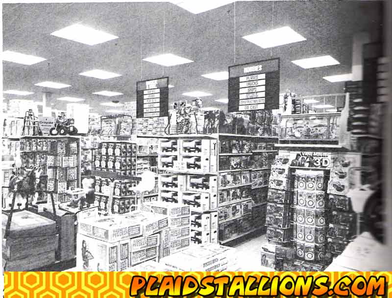 This is Children's Palace, a divison of Child World in Avon Massachusetts, circa 1977. While Child World had 52 locations at this time, the Children's Palace divison only had 9 locations at this time and were called "Toy Supermarkets", fill my cart please....
